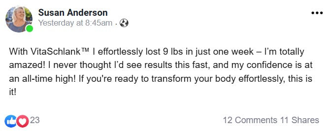 "Après avoir essayé d'innombrables produits, j'ai enfin trouvé VitaSchlank, et wow, quel changement ! J'ai perdu 7 livres en seulement deux semaines sans changer ma routine. C'est une sensation géniale de voir des résultats si rapidement – je me sens vraiment moi-même à nouveau !"